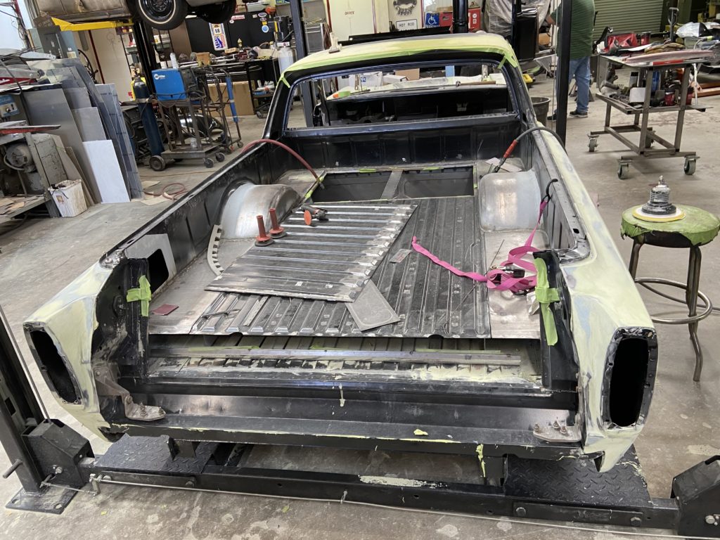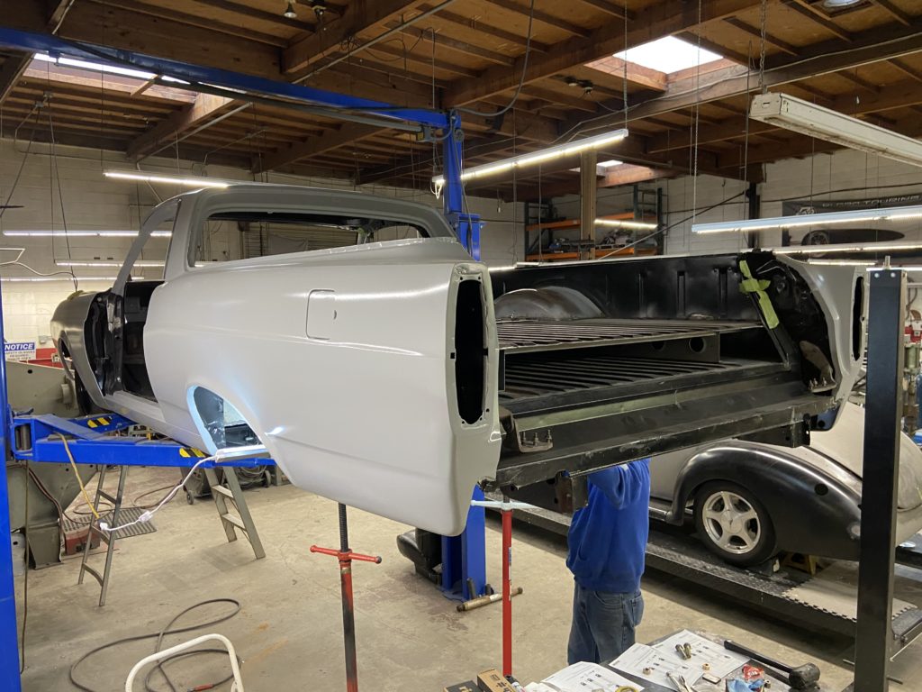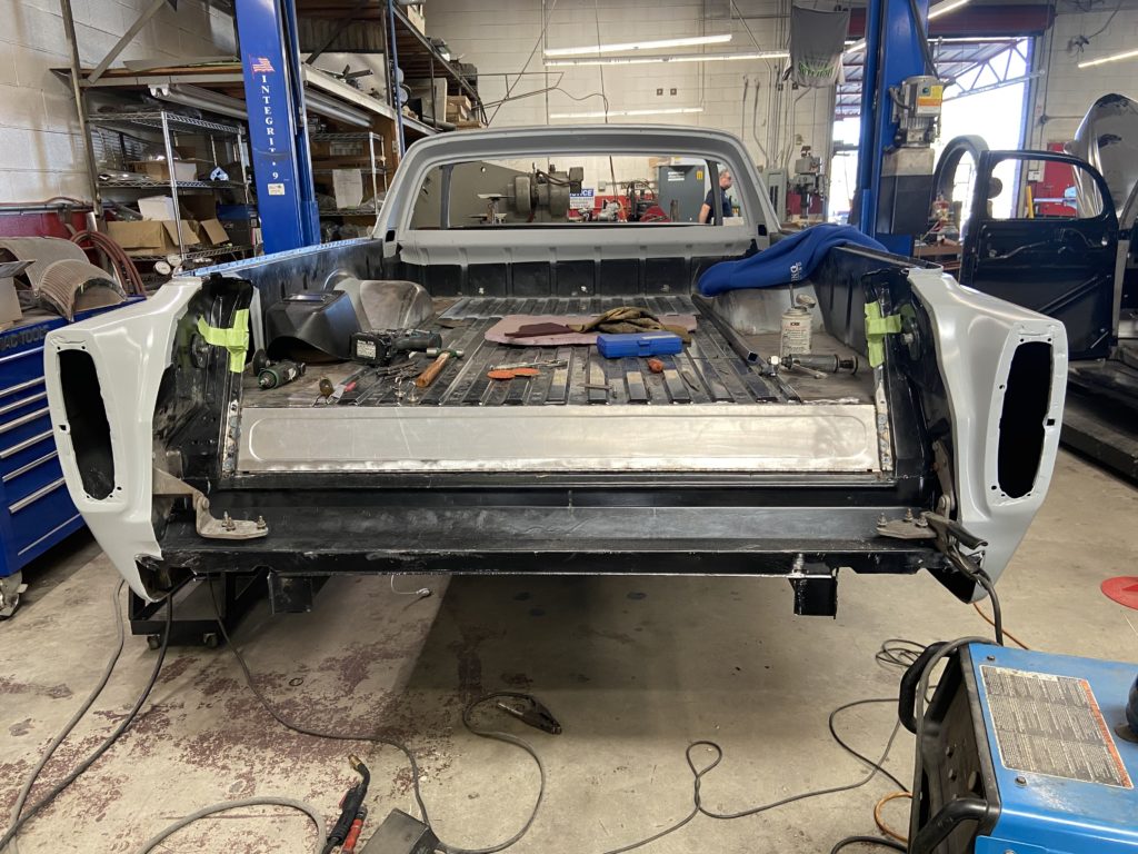 Update on what we're doing on this beautiful classic car/truck. It looks like our plan is to replace the engine to a Blue Print 347 stroker, take out all the glass and trim, remove front and rear bumpers, remove side mirrors. Take out all of the interior, there will be some media blasting happening and we will be putting in a whole new wiring kit!