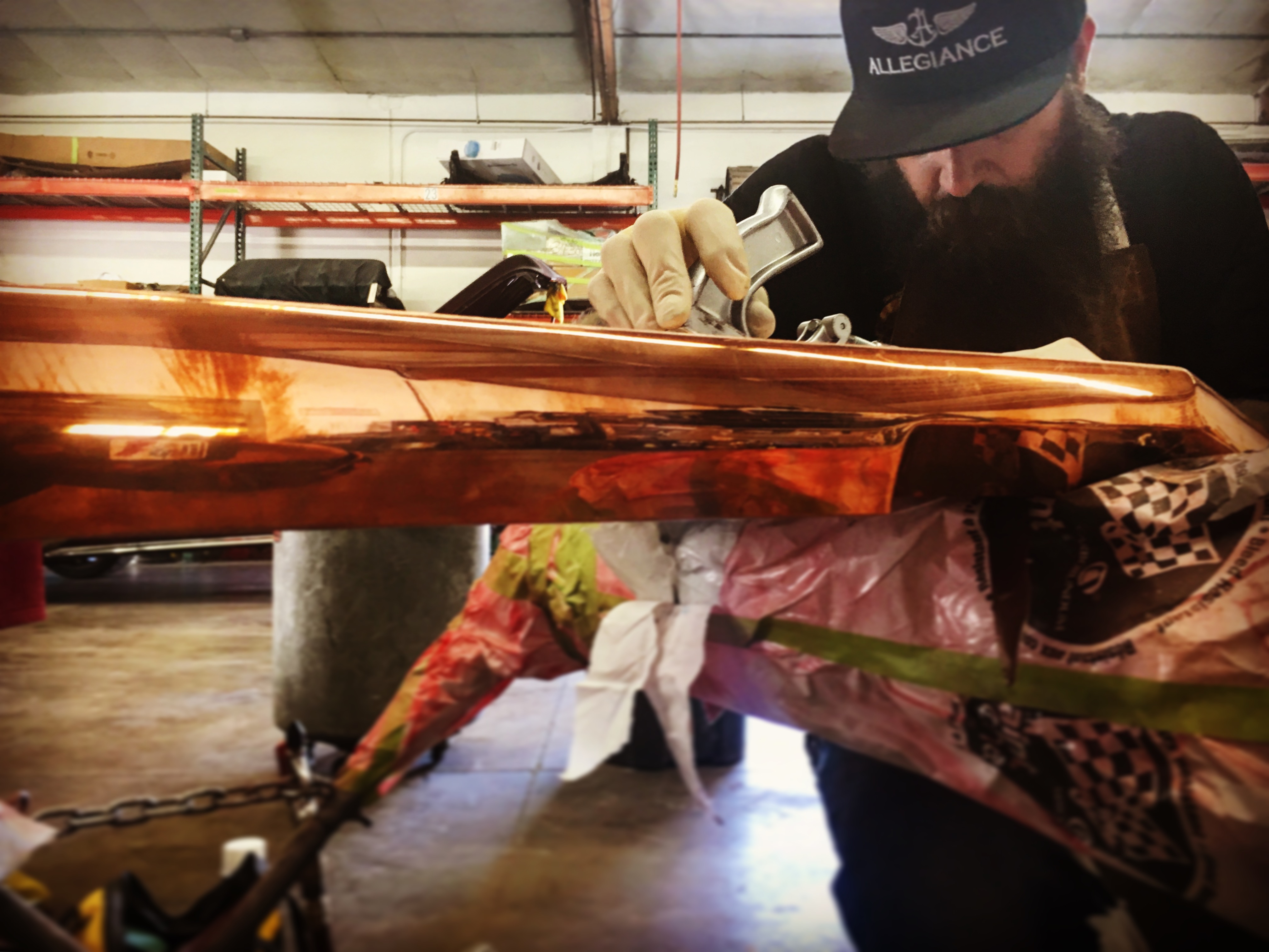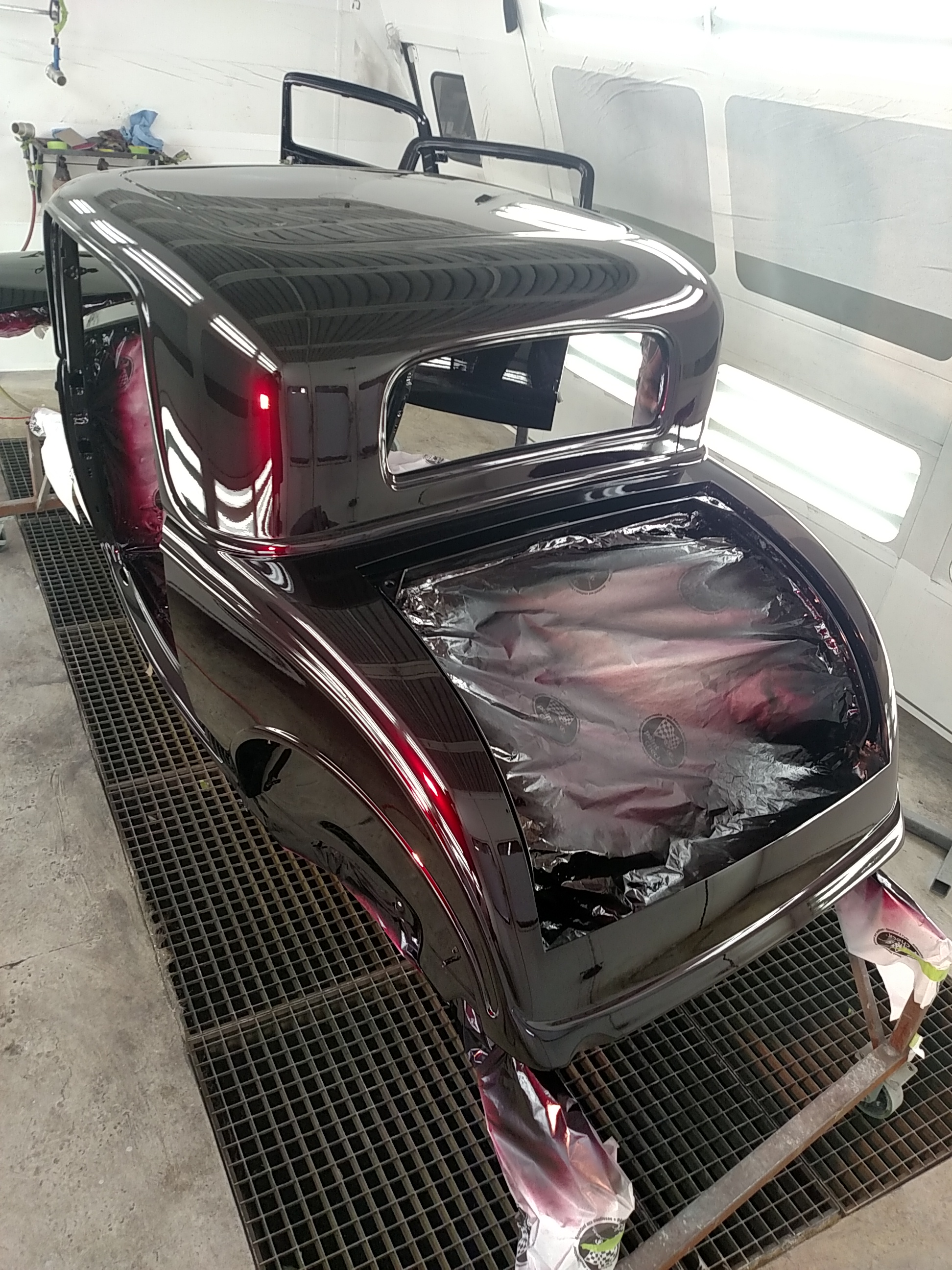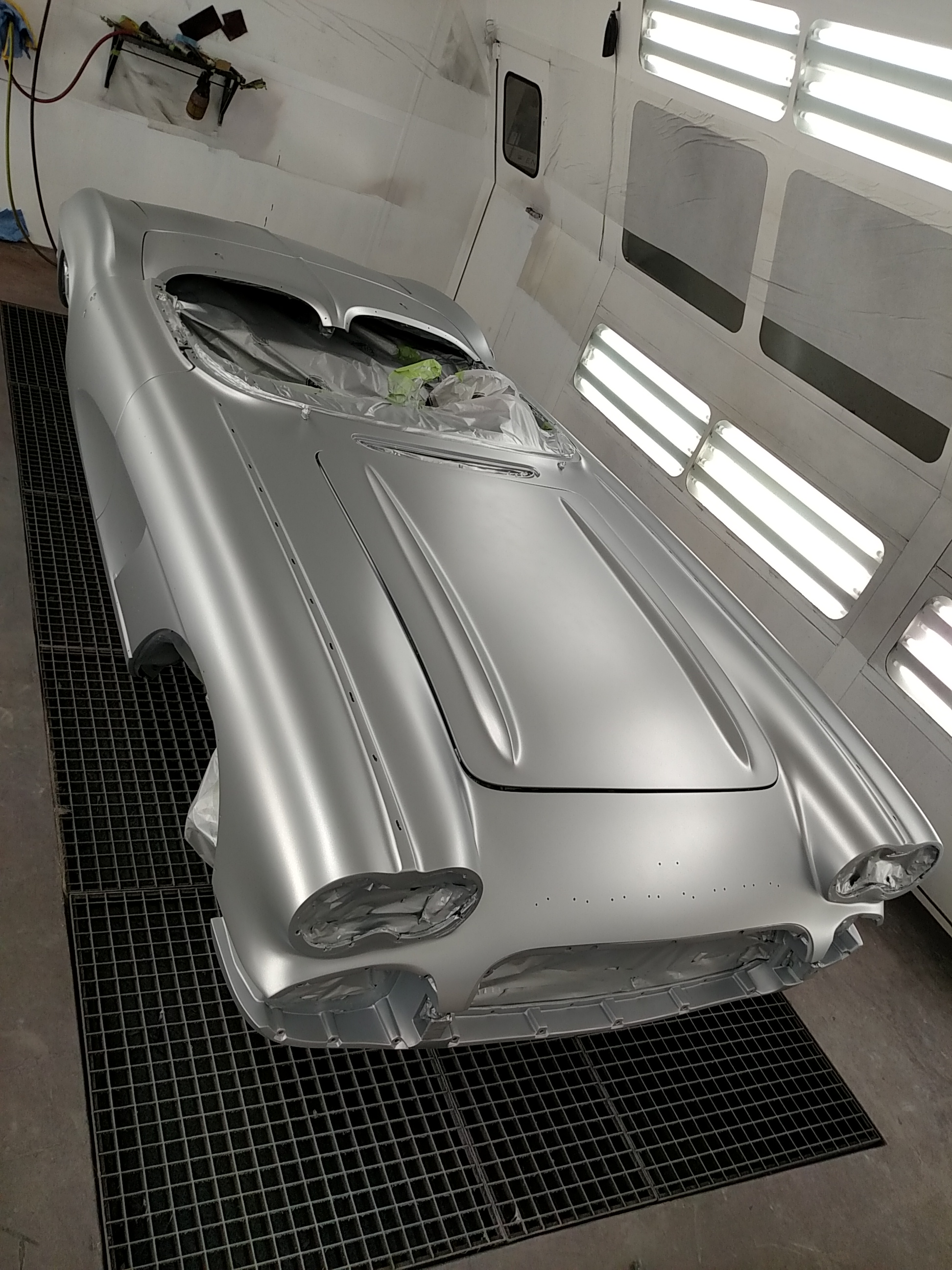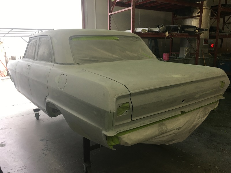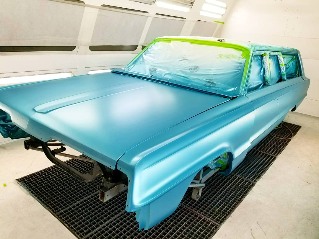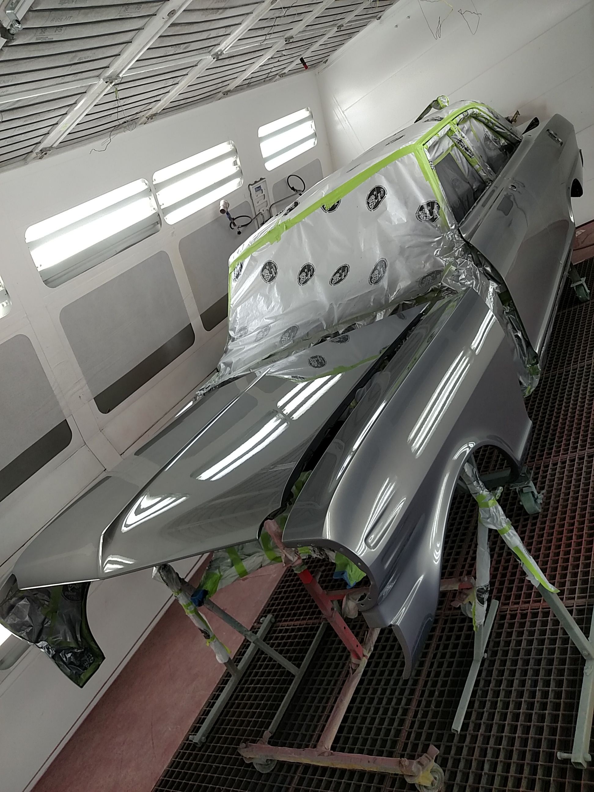 The paint process is obviously an extremely important process if you want a good looking ride. To get a car's lines, door and trunk gaps, hood gaps, bumper gaps, trim, etc. perfectly aligned, it takes talent and man hours to do it right. Using state of the art materials and processes helps, but in the end there is just no substitute for experience. Our paint booths are state of the art, and environmentally compliant with regular maintenance performed. Our compressors that run the paint booths are state of the art as well, and extremely efficient. After the the bodywork is laser straight, thick coats of base and clear are applied. Then, it gets "cut and buffed" for that glass finish.