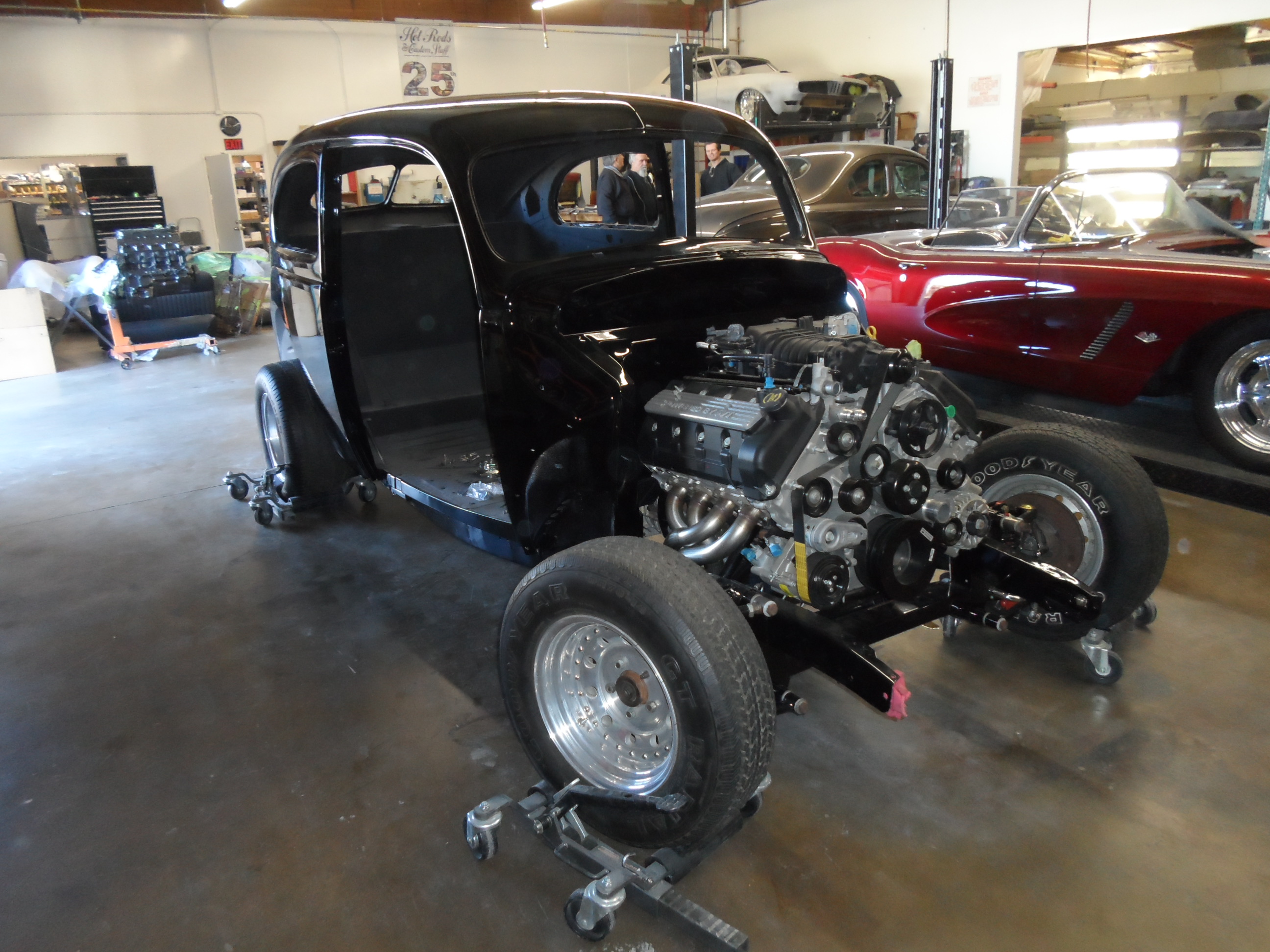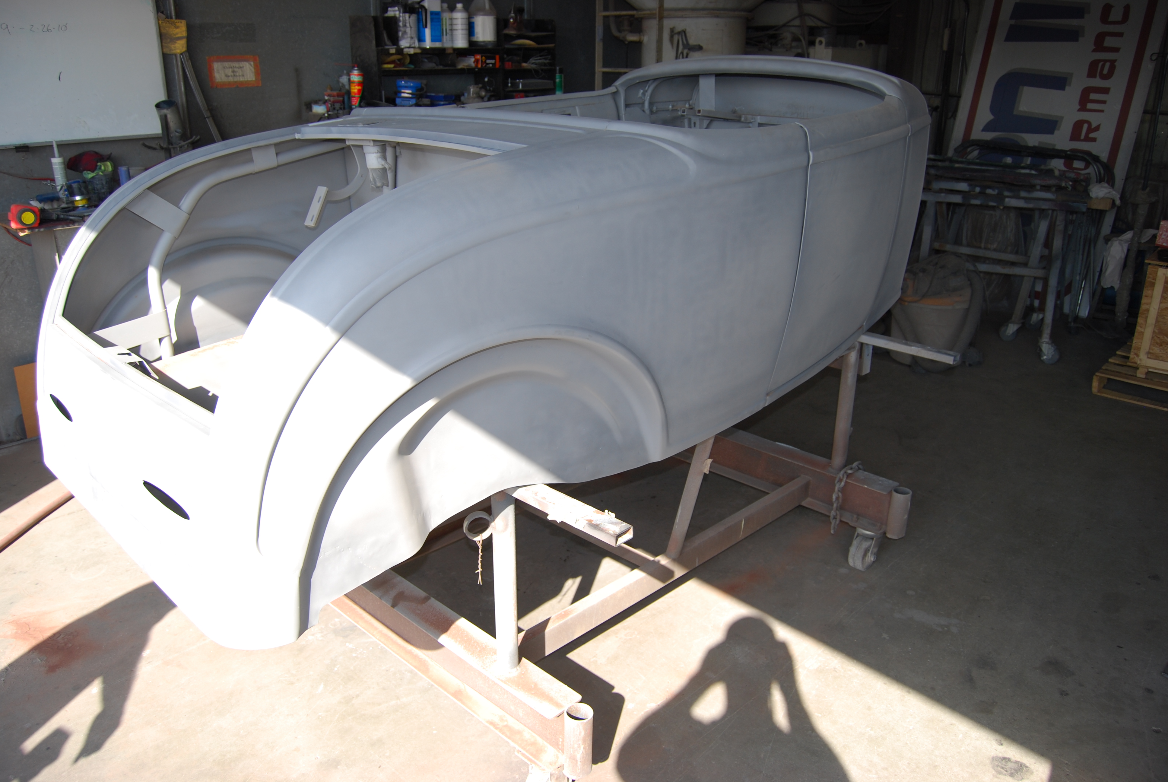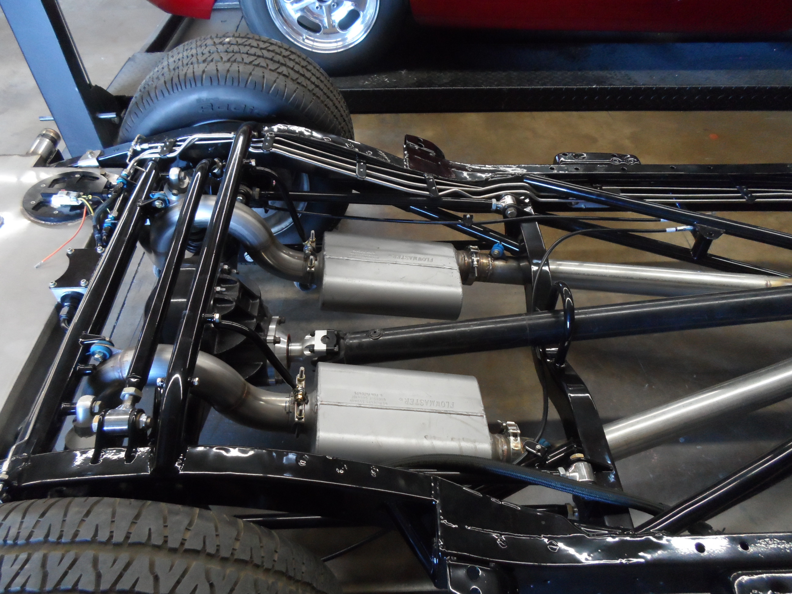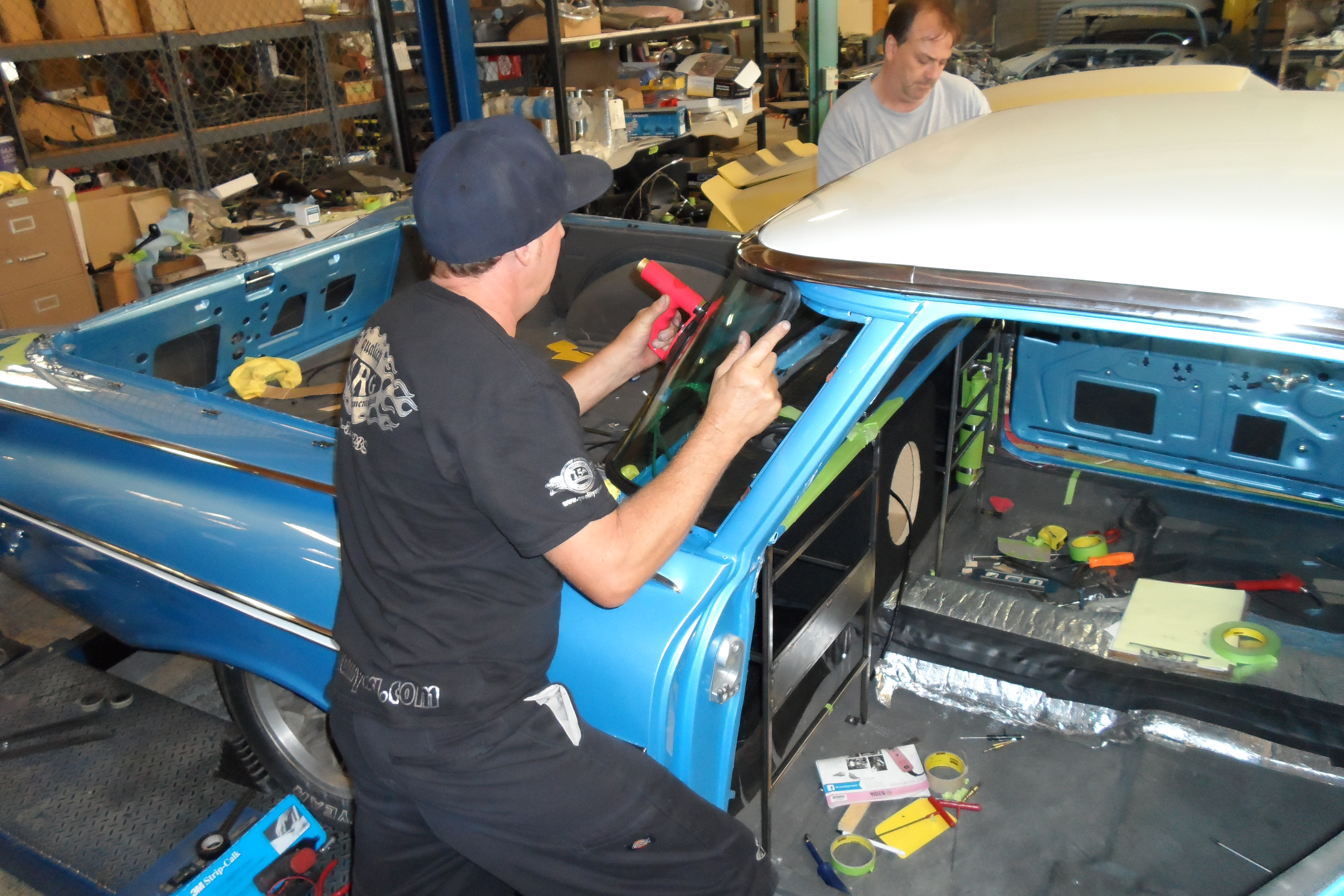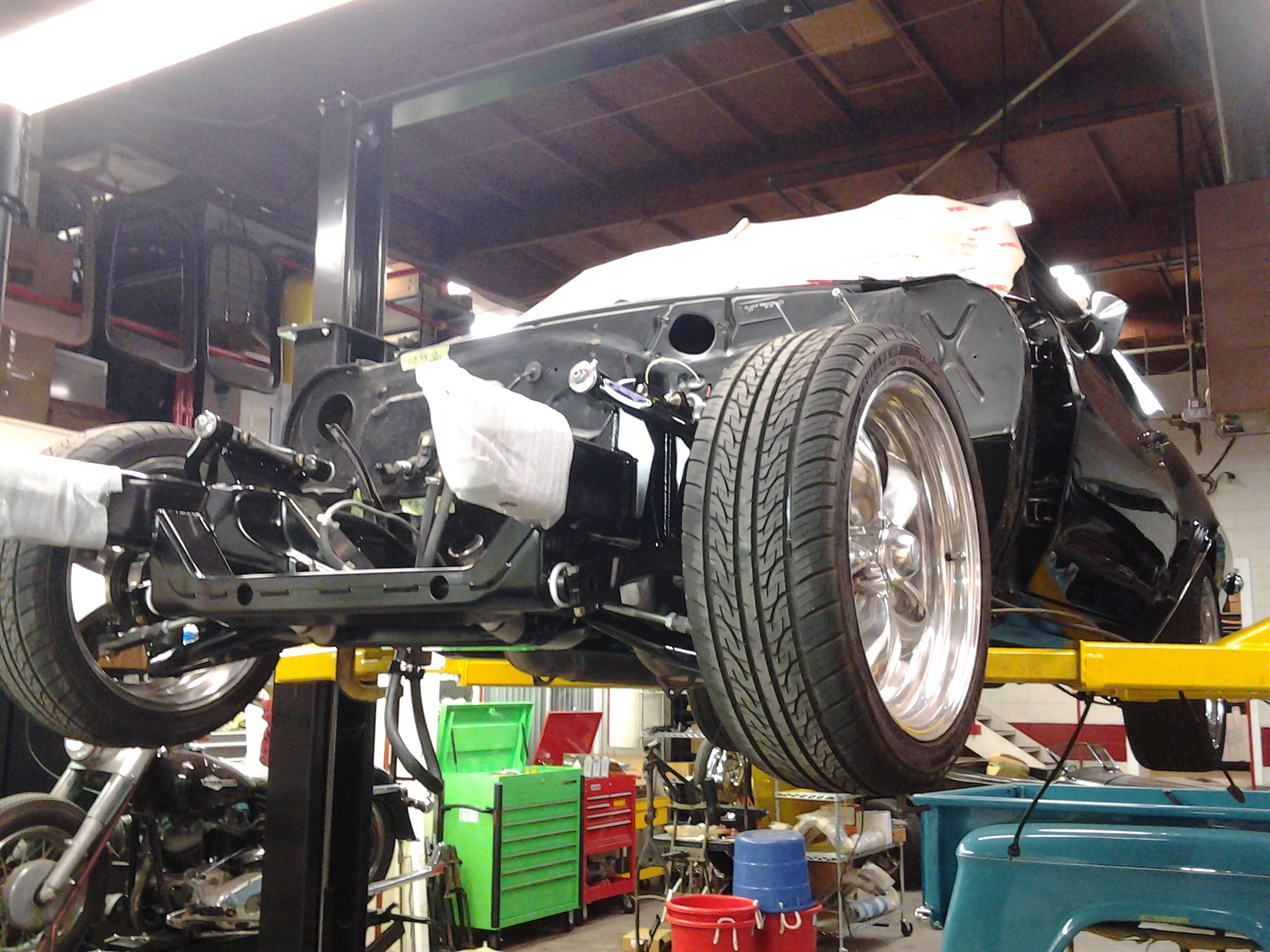 The paint process is obviously an extremely important process if you want a good looking ride. To get a car's lines, door and trunk gaps, hood gaps, bumper gaps, trim, etc. perfectly aligned, it takes talent and man hours to do it right. Using state of the art materials and processes helps, but in the end there is just no substitute for experience. Our paint booths are state of the art, and environmentally compliant with regular maintenance performed. Our compressors that run the paint booths are state of the art as well, and extremely efficient. After the the bodywork is laser straight, thick coats of base and clear are applied. Then, it gets "cut and buffed" for that glass finish.