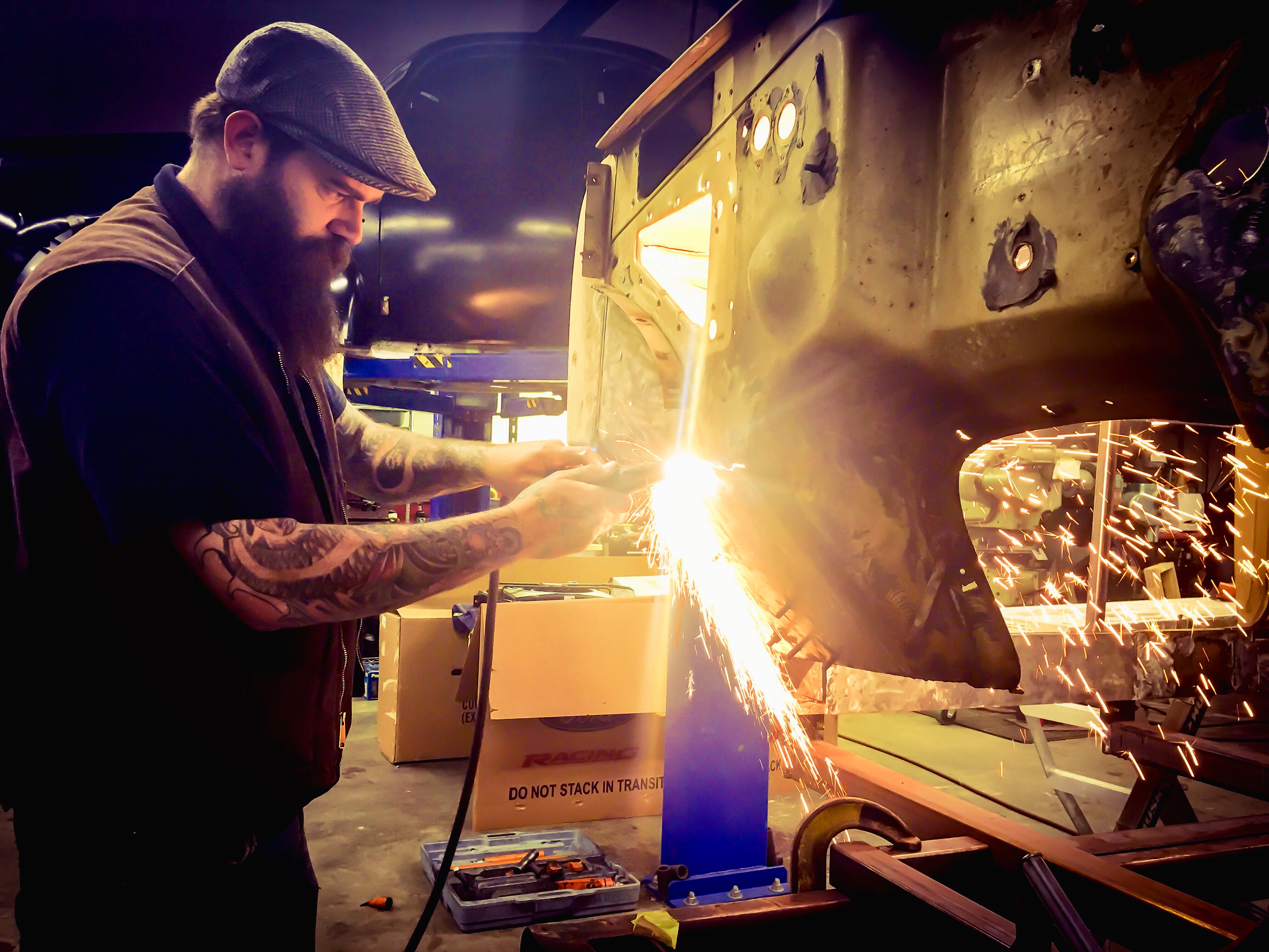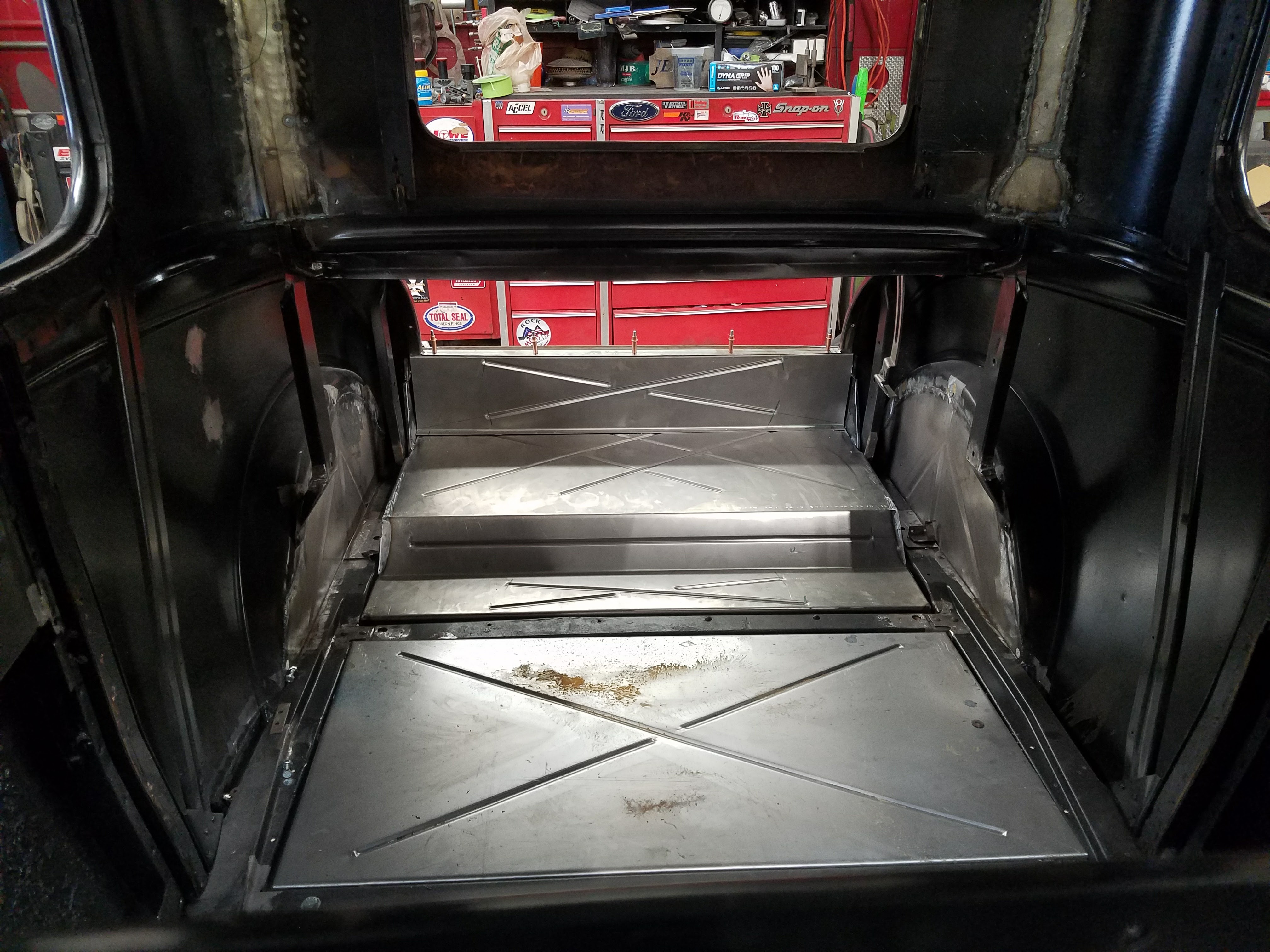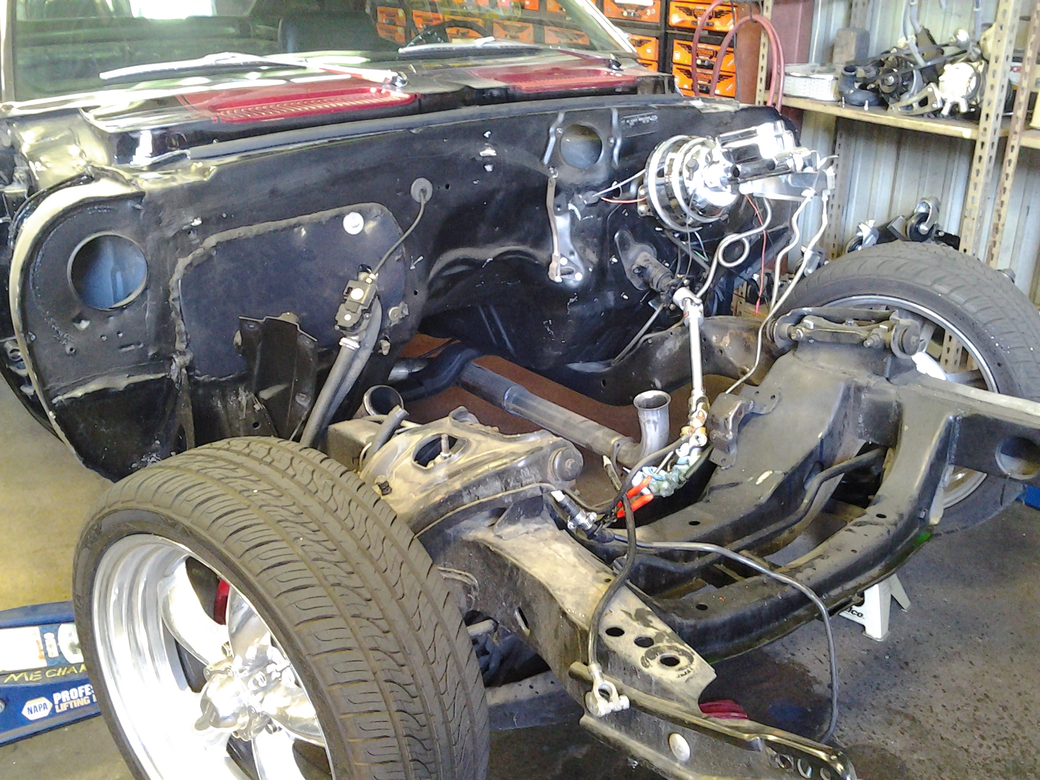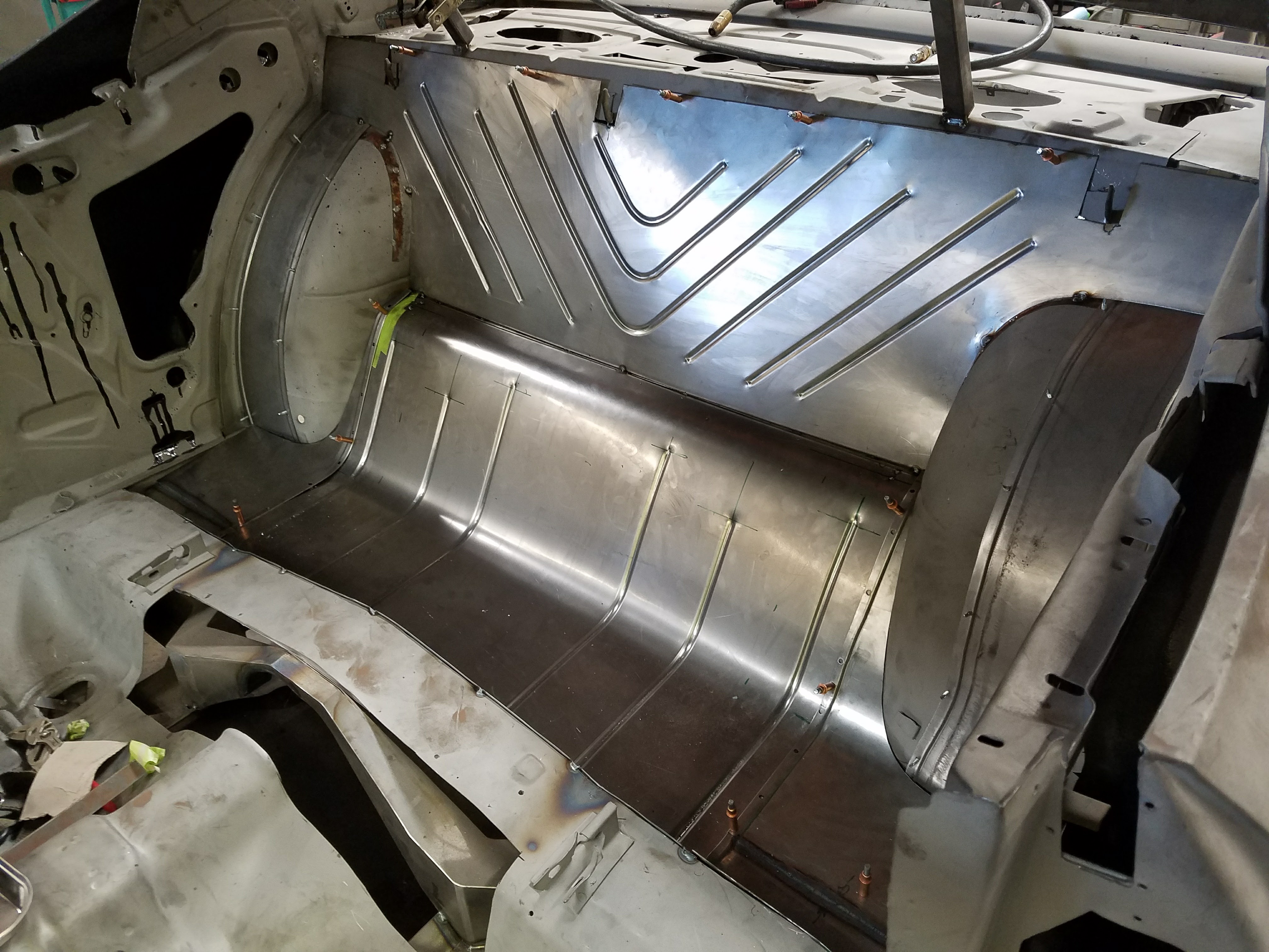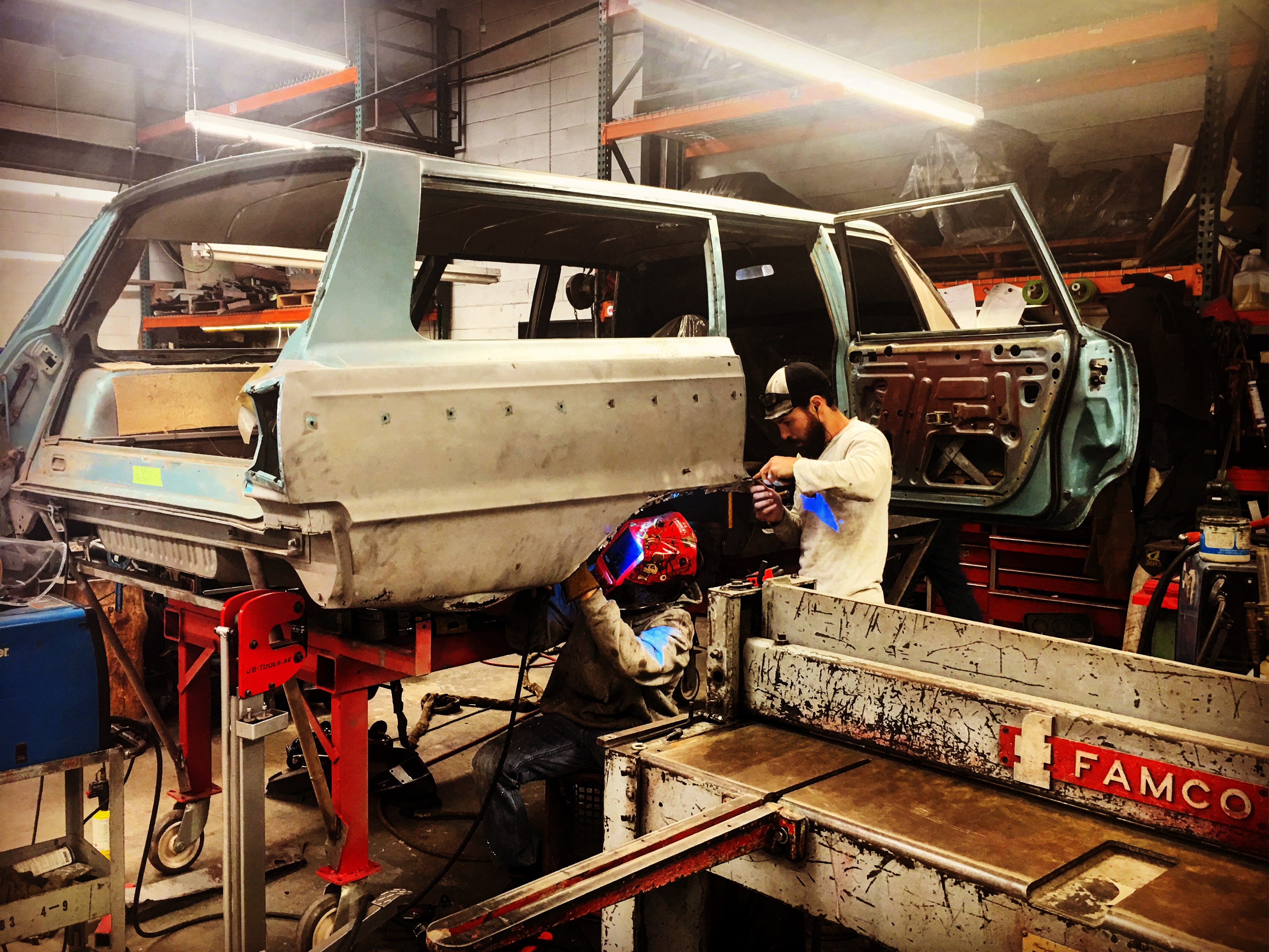The paint process is obviously an extremely important process if you want a good looking ride. To get a car's lines, door and trunk gaps, hood gaps, bumper gaps, trim, etc. perfectly aligned, it takes talent and man hours to do it right. Using state of the art materials and processes helps, but in the end there is just no substitute for experience. Our paint booths are state of the art, and environmentally compliant with regular maintenance performed. Our compressors that run the paint booths are state of the art as well, and extremely efficient. After the the bodywork is laser straight, thick coats of base and clear are applied. Then, it gets "cut and buffed" for that glass finish.